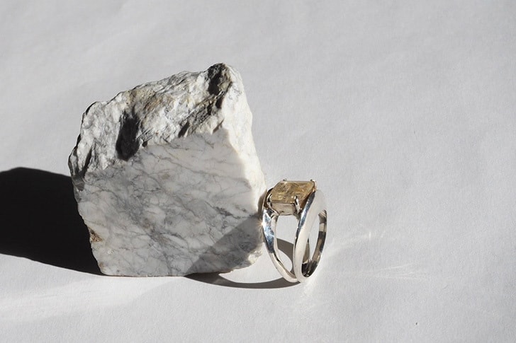 UROKO Ring Material:silver 925 ルチルクオーツ Size : 9, 10, 11号 ルチルクオーツ 8×10mm ¥34,000 波間に光る魚のウロコの様にsilverでウロコの反射とルチルクオーツで水の輝きを表現したリングです。シンプルでエッジのあるフォルムながら、存在感のあるピースです。